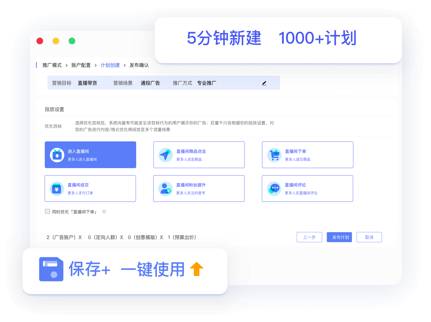 跨账户极速批量智能创建计划,5分钟新建1000条,高效测试素材